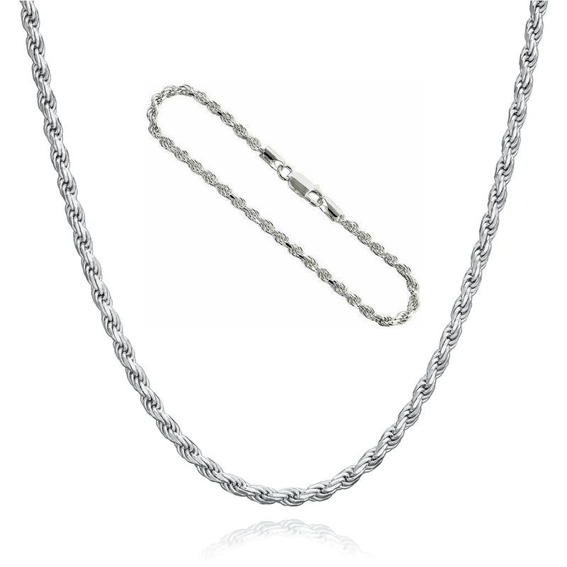 סט תכשיטים לגבר - שרשרת יוקרתית וצמיד יוקרתי חבל - צבע כסף