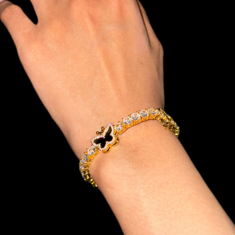 הפרפרים השחורים המשובצים בו מסמלים שינוי, התחדשות וסטייל ייחודי, כזה שיבטא בדיוק את מי שאת. 💫 כששמים אותו – מרגישים את ההבדל. כל תנועה שלך זורחת בזכות אבני CZ 5A נוצצות, ציפוי זהב לבן 18K ועיצוב שלא מתפשר על יוקרה. ⚡