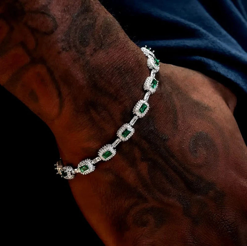 הכניסו סטייל יוקרתי ואלגנטי לחייכם עם צמיד Luxe™ לגבר, בעיצוב רחב ומרשים. צמיד זה, בציפוי זהב לבן 18K, משובץ באבני CZ איכותיות ואבני זרקון בגוון ירוק עשיר, מעניק נוכחות וייחודיות שאין כמותם. Luxe™ הוא הבחירה האולטימטיבית לגבר שמחפש לשדר עוצמה ואמירה אישית בכל הופעה.