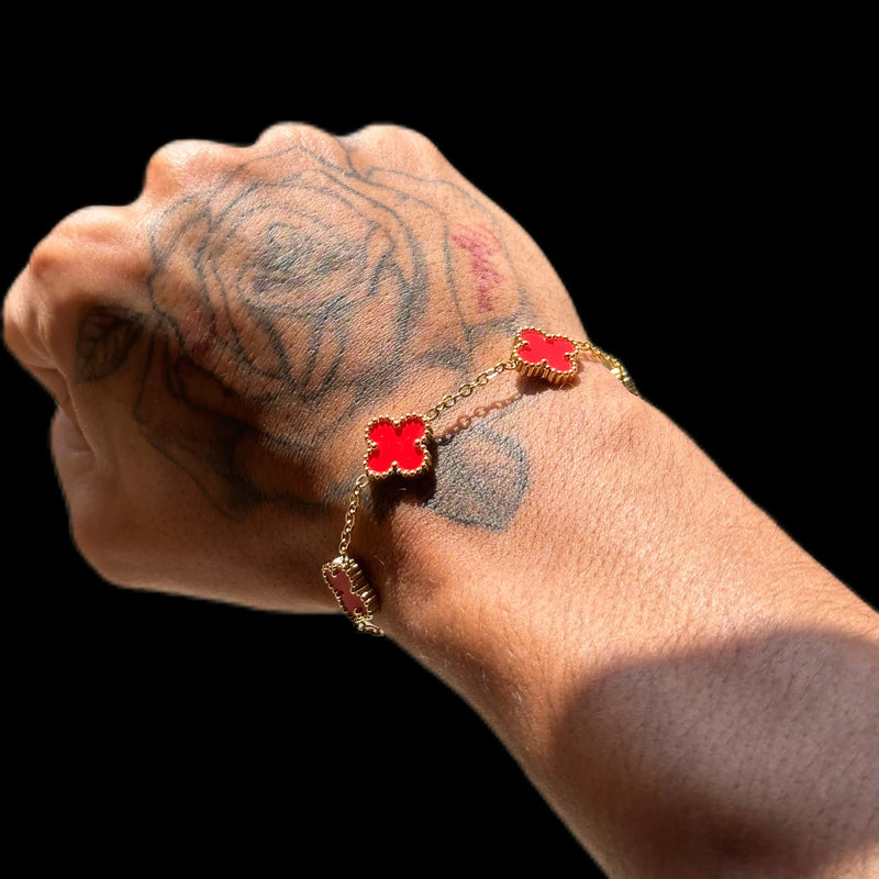 צמיד תלתן הינו צמיד אשר יבליט את העונד/ת שלו משאר האנשים בסביבה. בעל חוליות בחיתוך יהלום עם ציפוי זהב בגוון 18 קראט ותלתנים אדומים יוקרתיים.