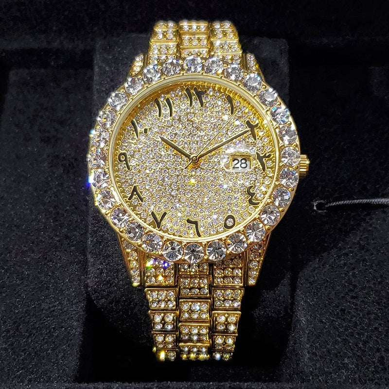 שפר את הסטייל שלך עם שעון יוקרה לגבר מדגם רייבר בצבע זהב, שעון רייבר הוא השעון היוקרתי שלנו | מארז השעון עשוי פלדה קשיחה ויוקרתית ומשובצת באבני חן נוצצות ויוקרתיות. אבני החן שובצו בעבודת יד על השעון על מנת לתת לכם את רמת הגימור הגבוהה הגבוהה ביותר, השעון בעל מנגנון קוורץ מדויק מאוד.