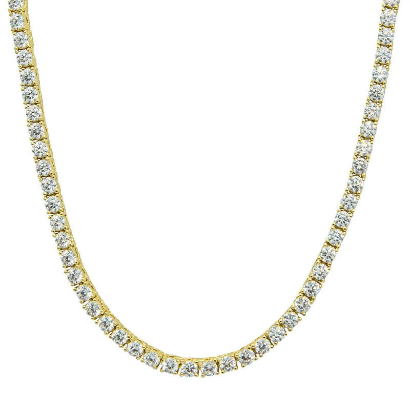 שפר/י את הסטייל שלך עם שרשרת טניס היוקרתית בצבע זהב שלנו, שרשרת טניס הינה השרשרת היוקרתית שלנו | עשויה ציפוי זהב ומשובצת באבני חן (זרקון) הנוצצים ביותר. אבני החן הונחו בעבודת יד על השרשרת על מנת לתת לכם את רמת הגימור הגבוהה הגבוהה ביותר, השרשרת בעלת סוגר ביטחון יוקרתי.